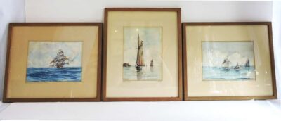 Set of 3 Nautical Watercolours – Signed A. Vincent, Titled ‘Sunset Sails’, ‘Rolling Up To London’ & ‘Journey’s End’