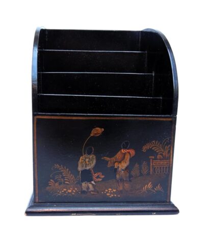 Tall English Chinoiserie Papier Mâché Letter Holder, circa 1890