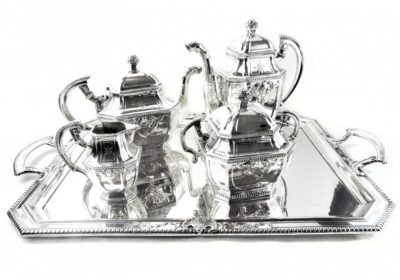 Silver Plated French Tea Set With Matching Tray, c1860.