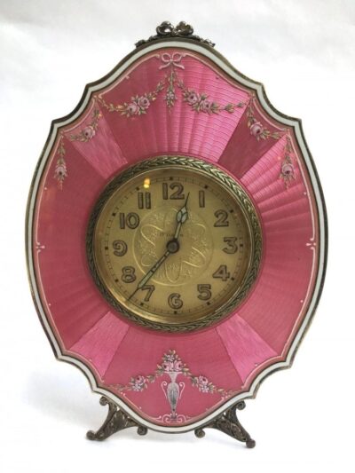 Swiss Silver .935 Pink Guilloché Enamel Clock With Original Box circa 1910