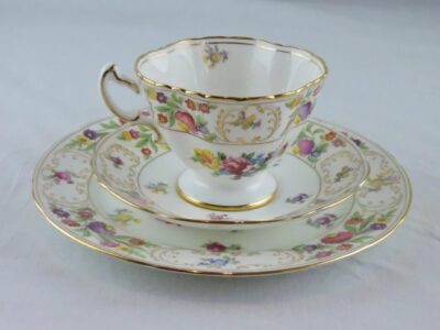 Dresden Spray By Hammersley Trios – Cup, Saucer and Dessert Plate
