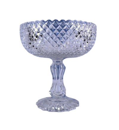 Large American Brilliant Cut Glass Pedestal Compote By Hawkes – Delft Diamond Pattern c 1930’s