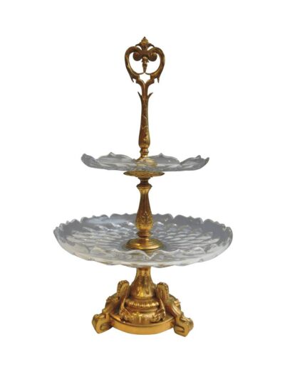 Gilt Bronze and Crystal 2 Tier Pedestal Pastry / Hors d’oeurve Server.
