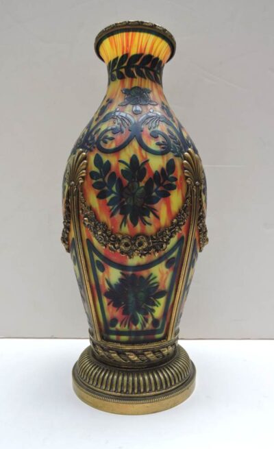 Signed Abel Combe French Cameo Glass Vase with Bronze Mounts marked France circa 1880-1890