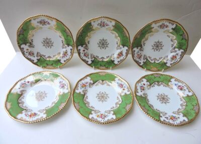 Set of 6 Green English Coalport Batwing Luncheon Plates Dates 1891 – 1920