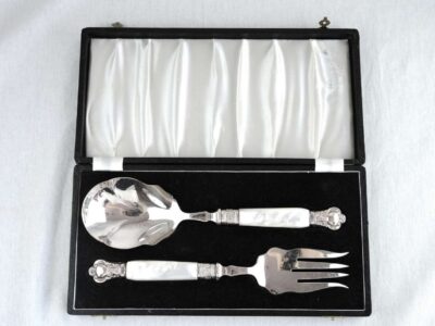 Mother of Pearl (Handles) Salad Servers in Fitted Leather-Bounded Box