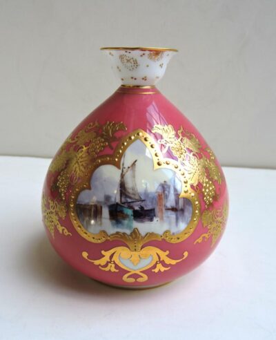 Small Hand Painted Royal Crown Derby Pink Vase – dated 1904.