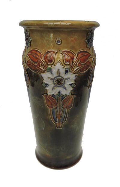 Tall Royal Doulton Stoneware Pottery Vase (Nouveau / Deco) / Arts & Crafts Pattern – c. 1922