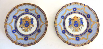 ‘Porcelaine De Paris’ – Pair of Heavily Decorated Armorial Plates circa 1910
