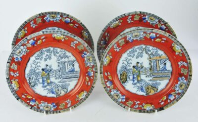 Set of 4 -19th Century English Chinoiserie Plates.