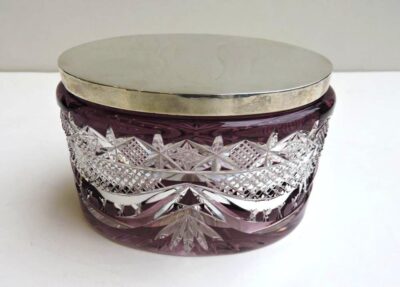 Bohemian Crystal 2 Colour Dresser Box with Dutch .830 Silver Lid – circa 1900