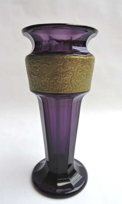Signed Moser Karlsbad Crystal Vase – Acid Etched & Gold Banded Amethyst Colour c. 1870-1925