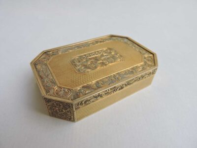 19th Century French Gilt .925 Silver Sterling Snuff Box with Elaborate Chasing.