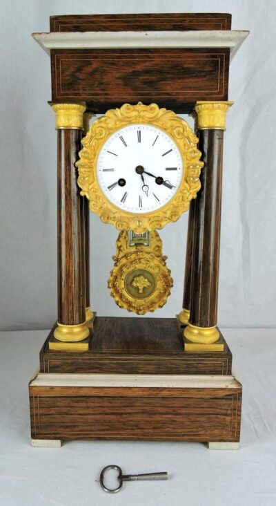 An EMPIRE French Rosewood and Gilt Bronze MANTLE CLOCK by JAPY FRERES, c. 1860