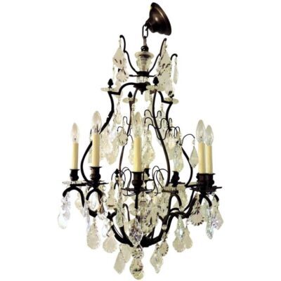 19th Century French Crystal and Bronze Patinated Eight-Light Chandelier