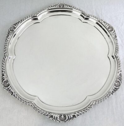 A Heavy Georgian Style English Hallmarked Sterling Solver / Tray, Dated 1921.