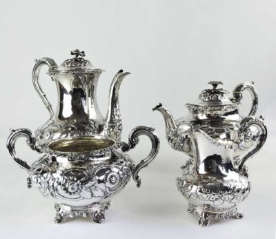 English Hallmarked Sterling Tea Set – London, dated 1846. Maker: William Hunter.