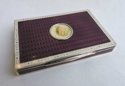 Austrian Silver & Guilloché Enamel Aubergine Card Case with Centre Ivory Portrait.