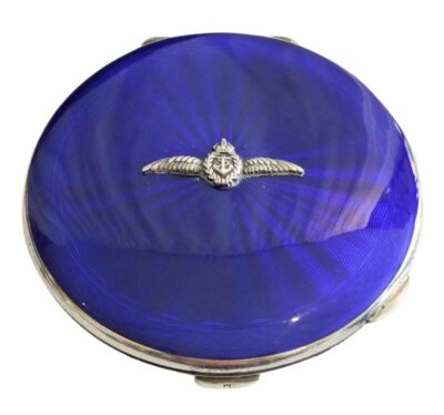 English STERLING SIVER & ENAMEL COMPACT Navy Fleet Air Arms Regimental CREST, c. 1955