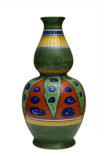 ATTRACTIVE Signed “archipel” GOUDA, 12″ GOURD-SHAPED VASE, c. 1920-30