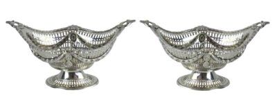 Pair of English Sterling Sweetmeat Dishes. London. Dated 1915.