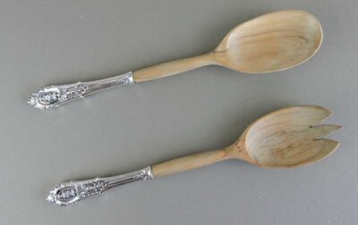 Pair of Wallace Sterling & Wood Salad Servers in ‘Rosepoint’ Pattern