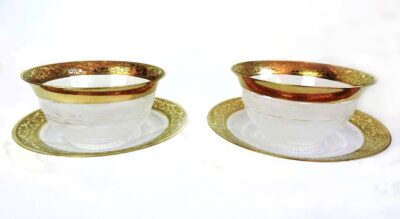 Pair of Moser Finger Bowls and Plates in ‘Splendid’ Pattern