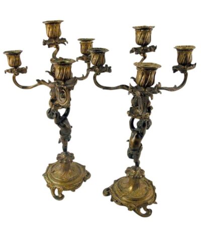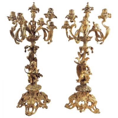 Pair of French Bronze Candelabras with Cherubs