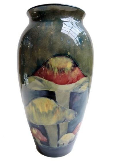 Rare Moorcroft Burslem Pottery CLAREMONT / MUSHROOM pattern 10 inch vase c1915