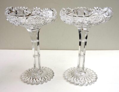 Pair of American Brilliant Cut Tall Pedestal Compotes