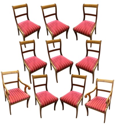 Set of 10 Mahogany Biedermeier-Style Dining Chairs.