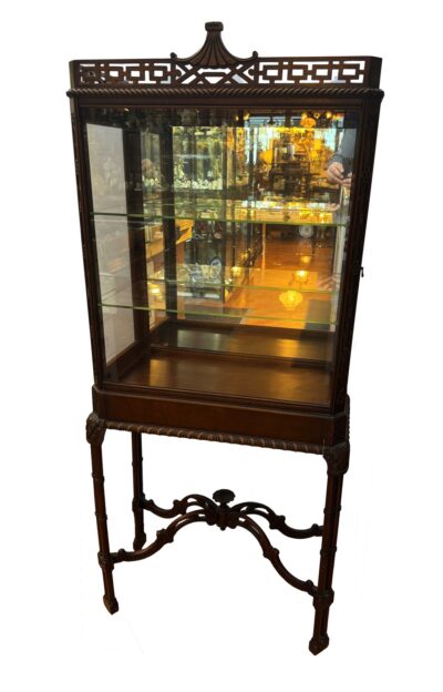 Mahogany Chinese Chippendale Style Curio Cabinet with Side Doors