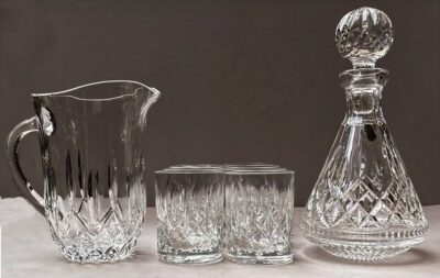 Crystal Whiskey Glasses Set of 8 + 1 Signed Waterford Decanter & 1 Pitcher