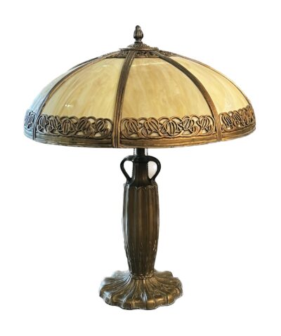 Circa 1910 American Brass Table Lamp With Caramel Curved Glass