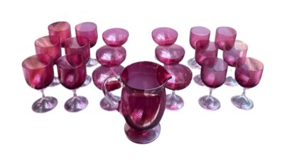 Murano Glass & Pitcher Set of 19 Pieces By Nason Moretti, Twisted Ruby Red Collection 3/62
