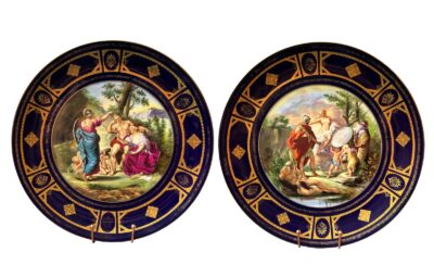 Pair of Large Royal Vienna Style Chargers with Classical Roman Scenes – 15 inch diameter.