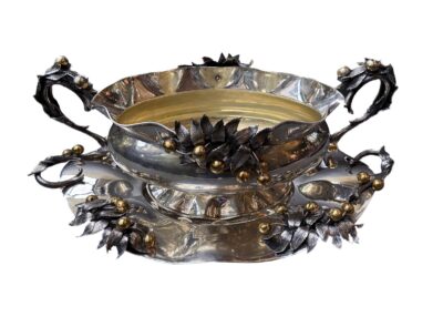 Mid 20th Century Splendidly Large Turkish Silver (900 standard) Bowl and Platter Center Piece Set (3.4 KG) with Exquisite Detail