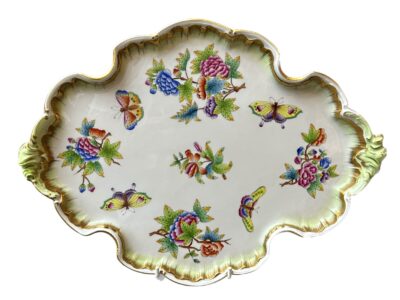 Herend Large 15 inch Porcelain Rococo Tray in the Queen Victoria Pattern