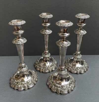 Set of 4 English Plated Candelsticks circa 1910 – Barker Ellis.
