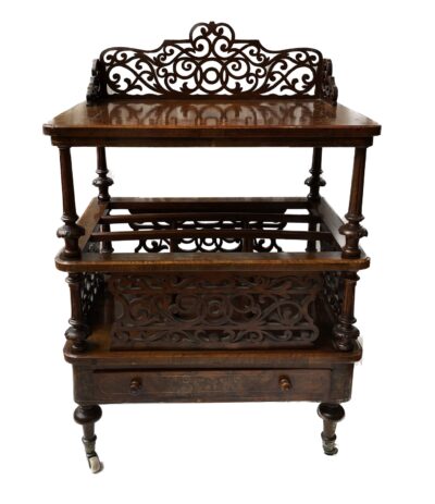 English Burled Walnut Victorian Two Tier Canterbury – circa 1860