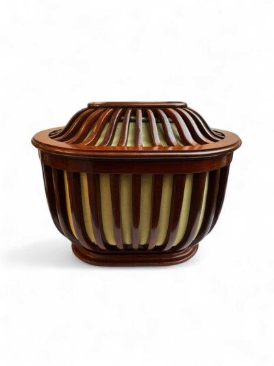 English Porcelain & Silver Plated Barrel Shaped Biscuit Barrel in Imari Colours – circa 1890. Walker & Hall English marks.