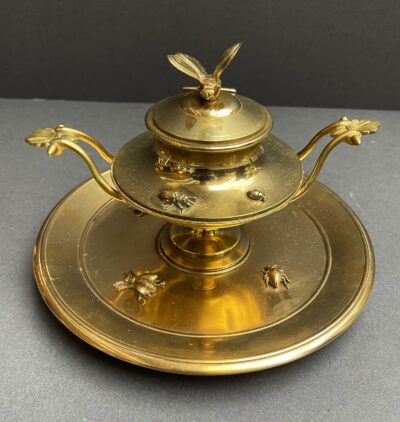 Napoleon III French Bronze Inkwell with Butterfly & Insects Decoration.