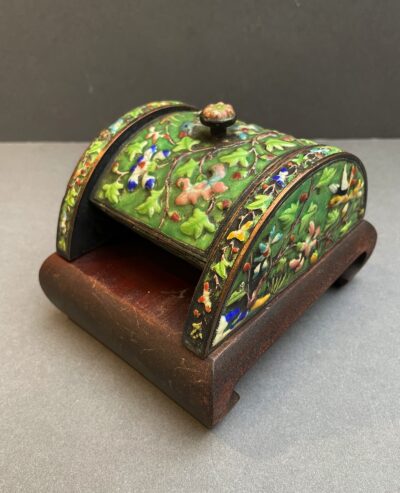 Early Republic or Late Qing Dynasty Chinese Colourful Cloisonne Jewellery Box, Wooden Stand