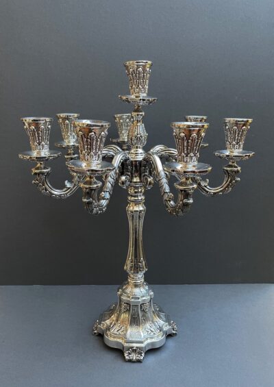 Large, Impressive 22 Inch Sterling Silver Judaica Single Candelabrum by Hazorfim