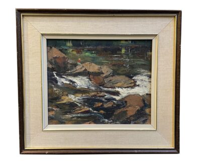 “Swift Water – Moores Lake, Haliburton – 1940” – Canadian Painting on Board – Langley Thomas Donges (1901-1992)