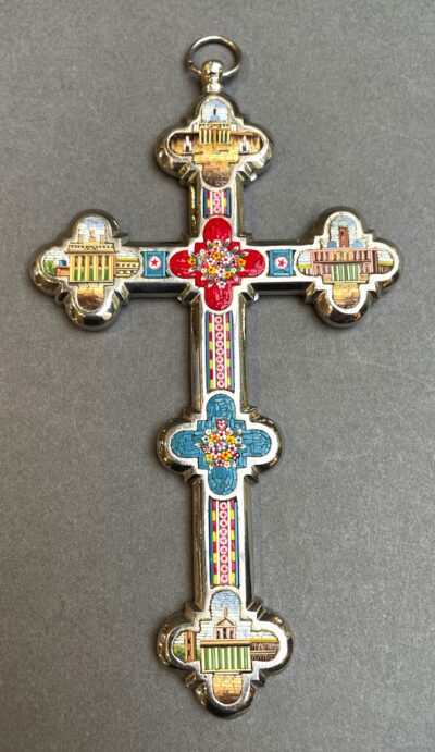 Decorative Micro Mosaic Glass Tiles and Metal Basilica Cross with Ring Attachment