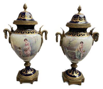Pair of French Sevrés Covered Vases with Bronze Mounts – Signed “C. Velly” – dated 1841
