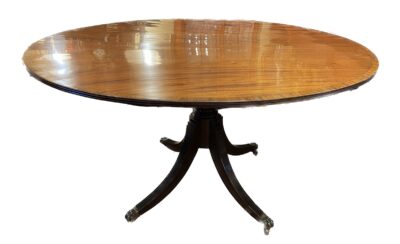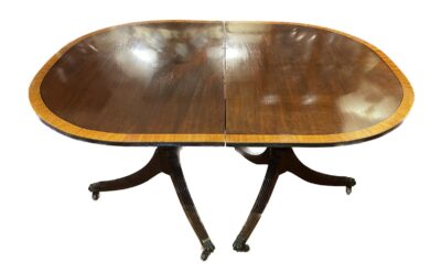 Mahogany with Banded Satinwood Double Pedestal Dining Room Table – with 2 Leaves.