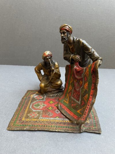 Vienna Austria Orientalist Cold Painted Bronze of Two Carpet Sellers Signed “BK” in Square Box Foundry Mark