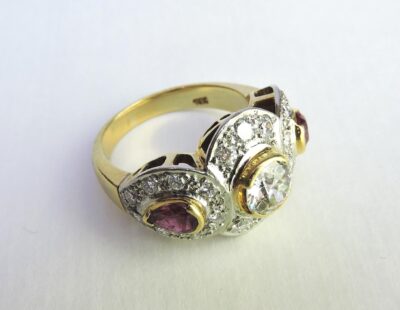 Art Deco Designed 18k Gold, Diamonds & Rubies Ring.